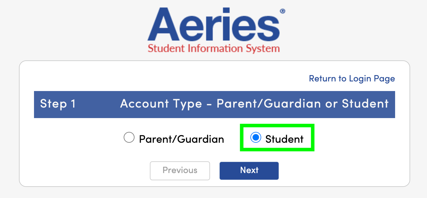 Tip: The Student/Parent Aeries Login page has a plain white background, while the Teacher/Staff page will have a pictured background.
